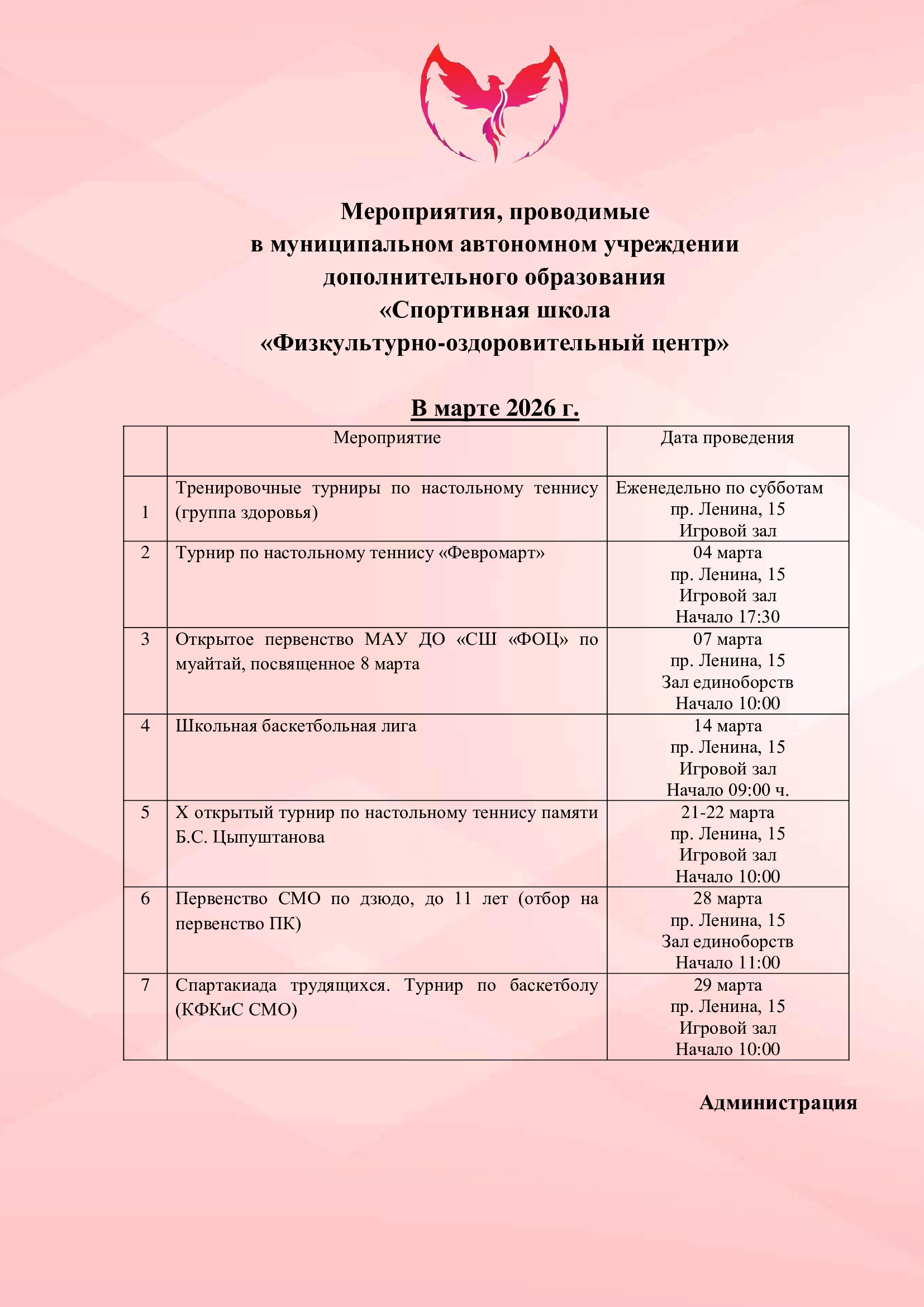 Мероприятия на месяц